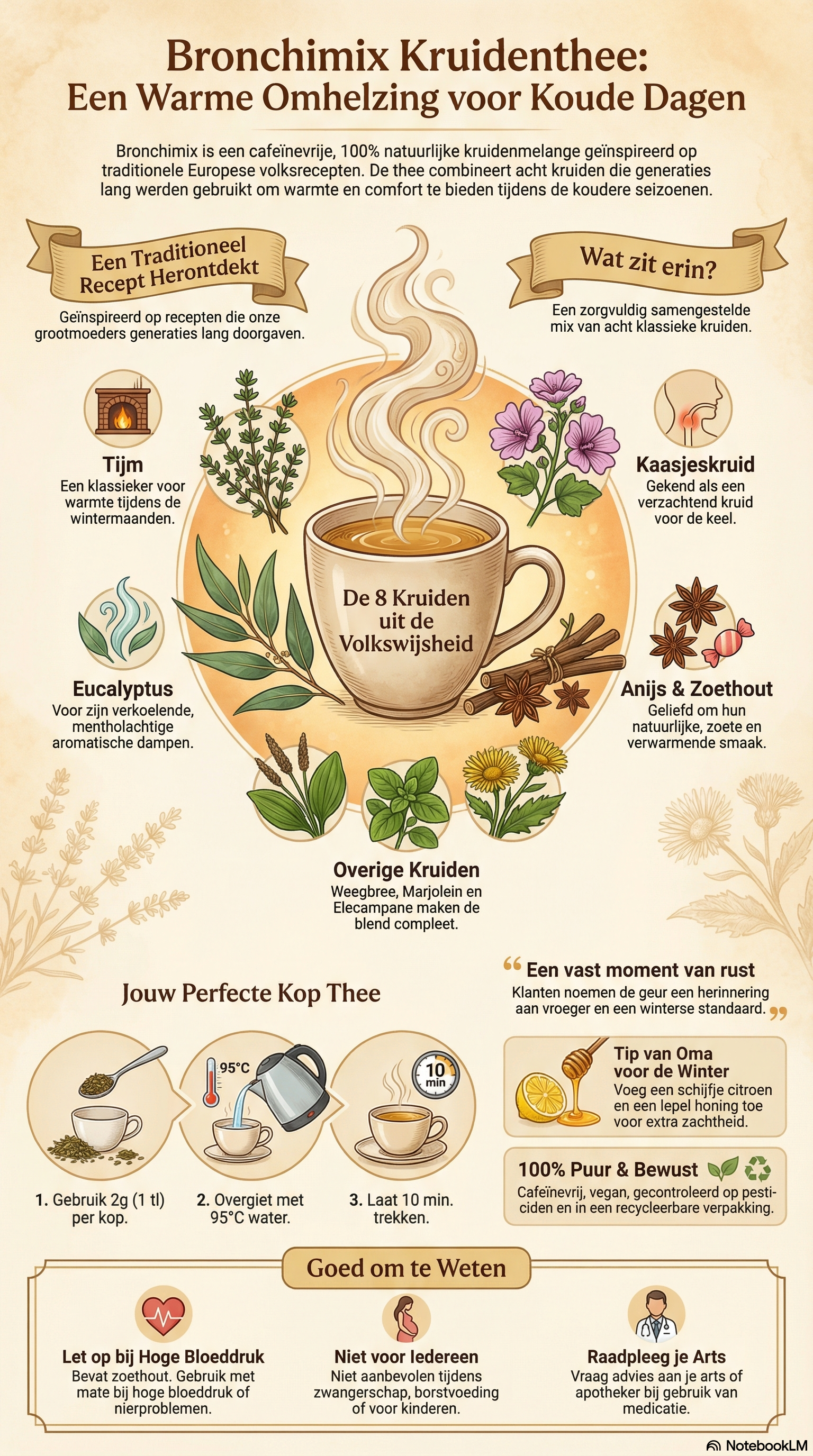 Stel je voor: morgen zet je de waterkoker aan, net zoals generaties voor jou deden. Je ruikt de kruiden, giet het water op, inhaleert de damp. Die eerste warme slok ; kruidig, fris en troostend.