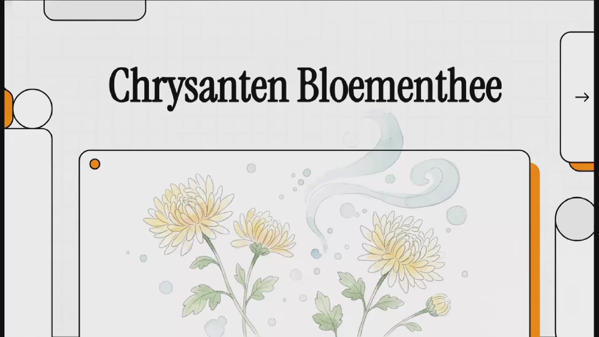 - Chrysantenbloesem (Chrysanthemum morifolium) – traditioneel gewaardeerd in de Chinese theecultuur, geliefd om zijn zachte, bloemige smaak en lichte, honingachtige aroma.